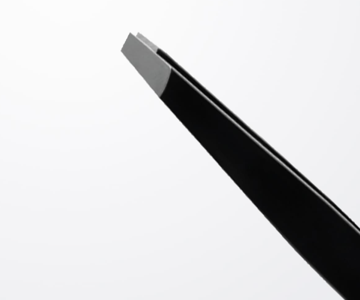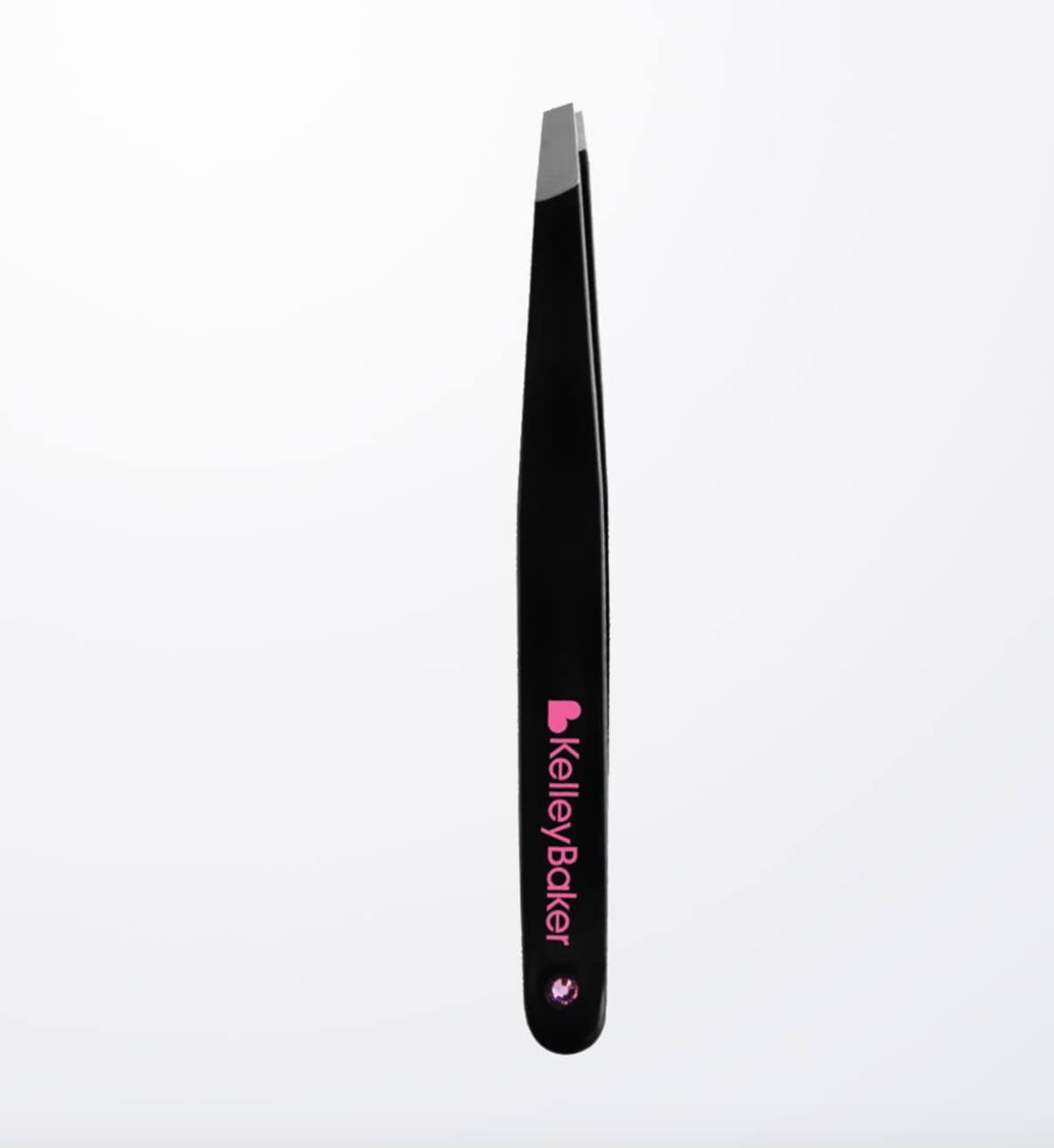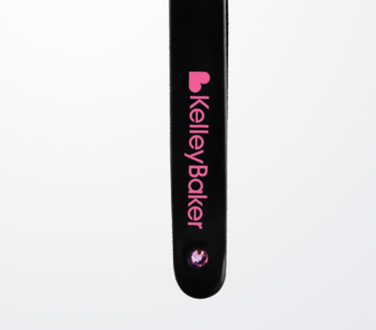 Slanted, perfect tip alignment securely grasps hairs every time for precision tweezing. Pointed end is perfect for stubble and find, hard-to-pull hairs. Easy to grip. Black enamel with signature Kelley Baker Brows pink Swarovski crystal.