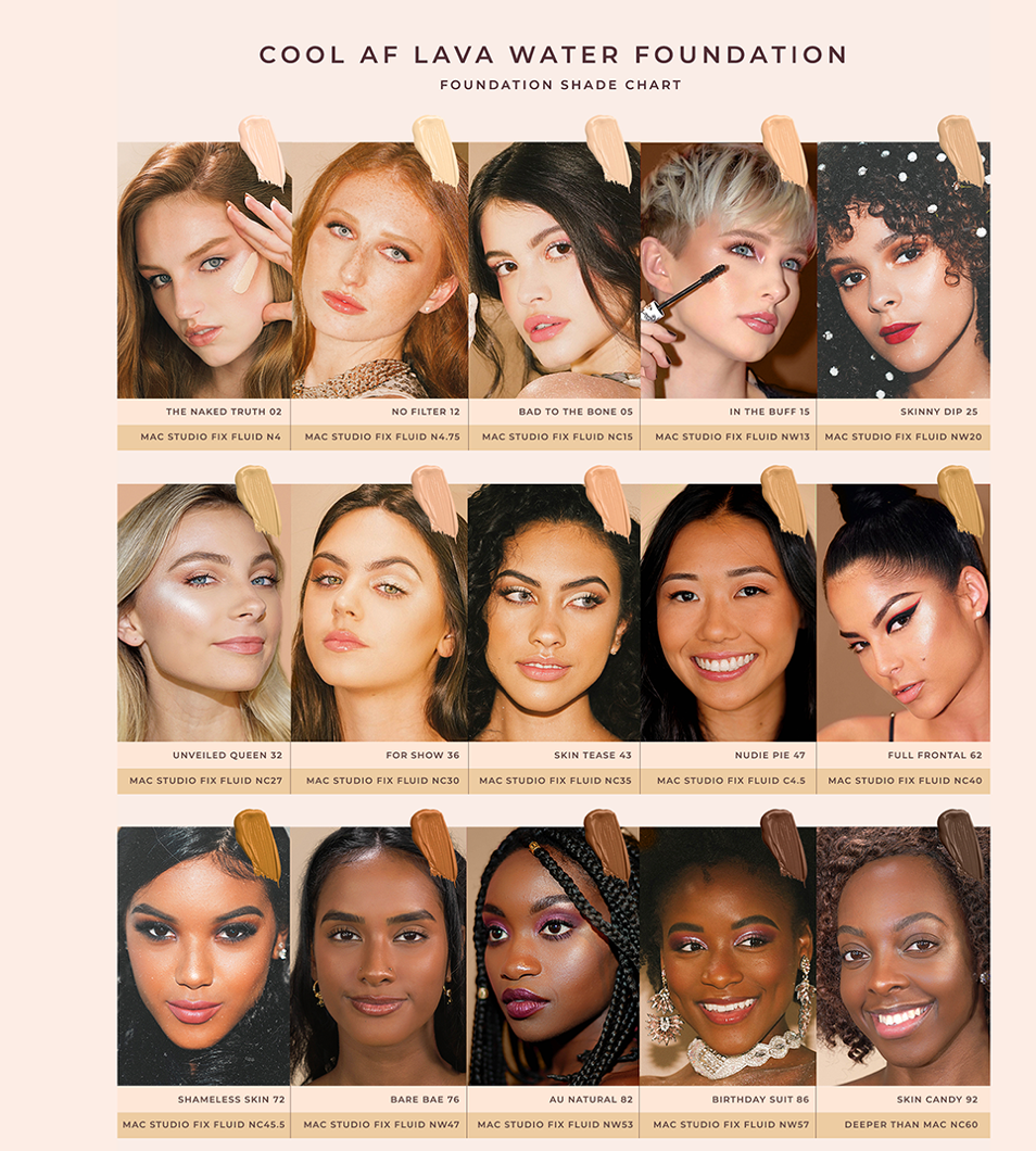 Shake well before use. - Apply 1-2 pumps of Lava Water Foundation to the back of your hand. - Dip the Flawless Wand Foundation Brush in to the formula and apply to skin at the center of the face, blending outward and down the neck in circular motions. Beauty Tip: - Apply Detox and Chill Lava Water Foundation Primer first to create a moisturized & primed face for smoother and longer lasting wear. - For light, customizable coverage, mix a pump of Detox and Chill Lava Water Foundation Primer to the Lava Water Foundation for lighter, hydrated wear. - Use lighter and deeper shades of Under Cover Concealer to create highlights and contours for full face dimension. - If your skin tends to be oily, finish your look with The Powder Room Translucent Setting Powder