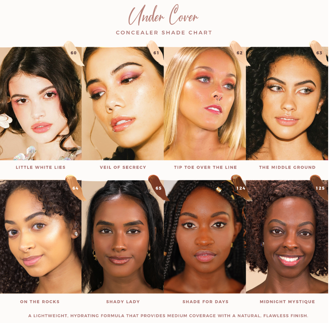 Under Cover concealer is a lightweight gel serum concealer formulated to be hydrating, buildable, and provide medium coverage with a natural, flawless finish. Infused with Vitamins and Galactoarabinan to keep skin moisturized and to rejuvenate and improve the skin's appearance. The angled doe foot applicator is easy to use and precisely applies the velvety soft formula to visibly brighten the complexion and cover dark circles. This blendable, long-wearing concealer is great for all skin types.